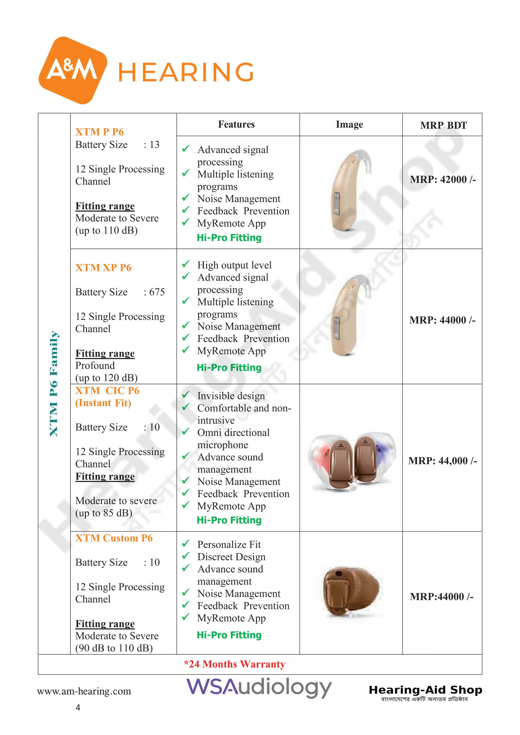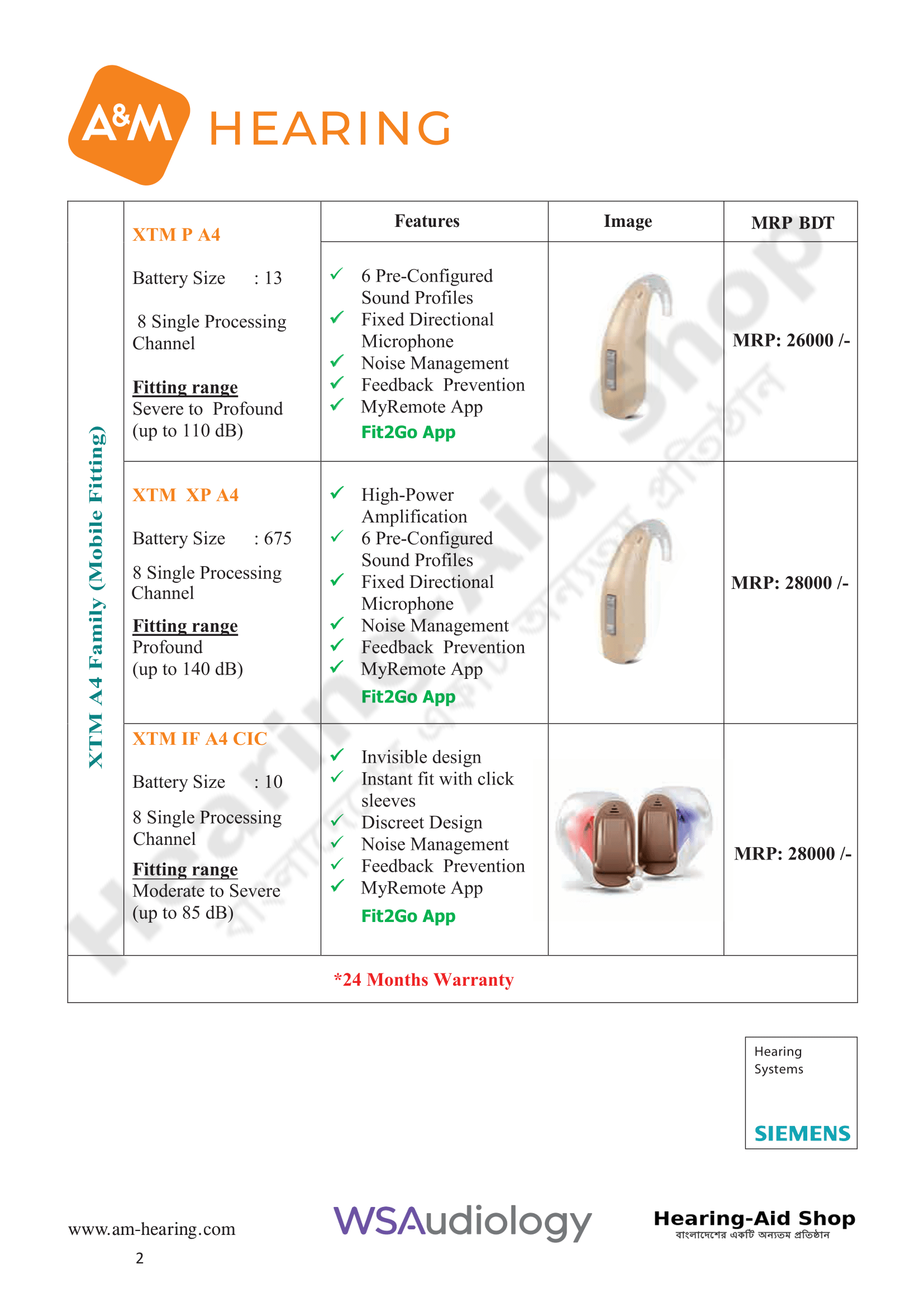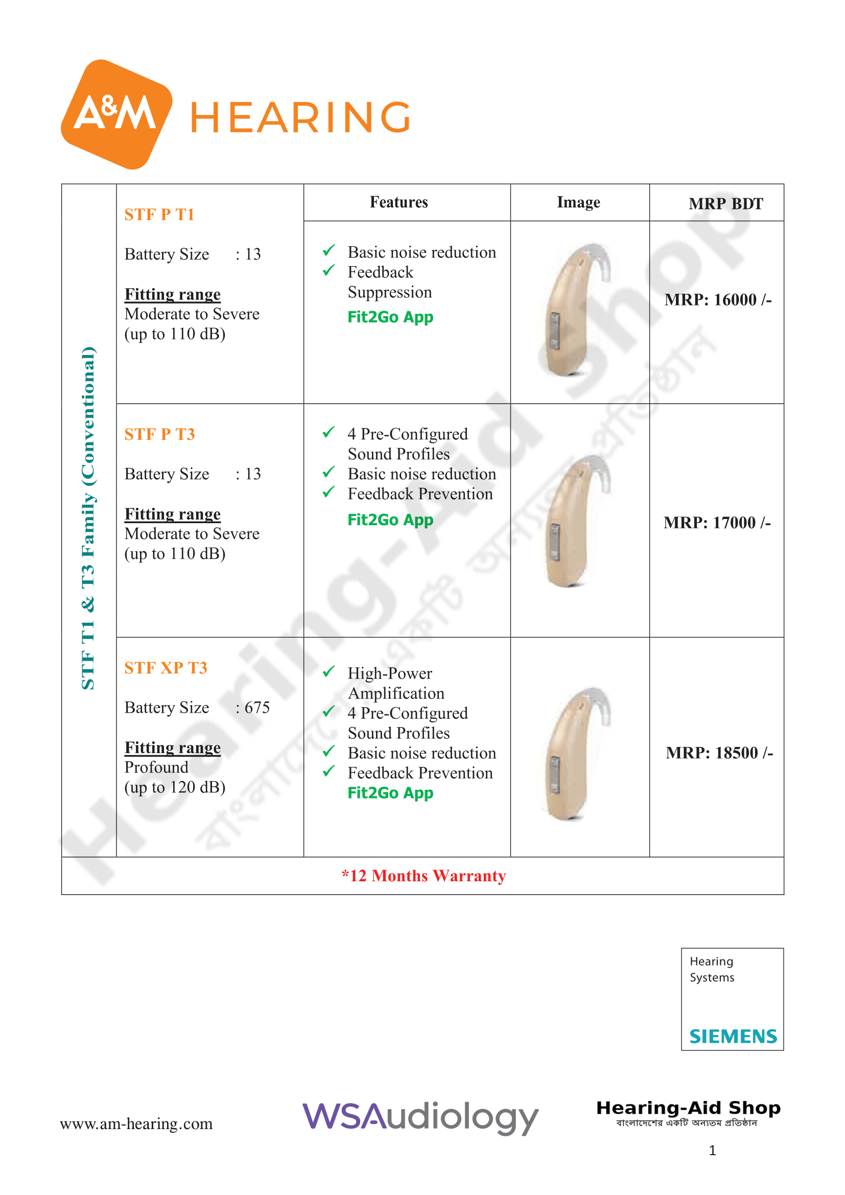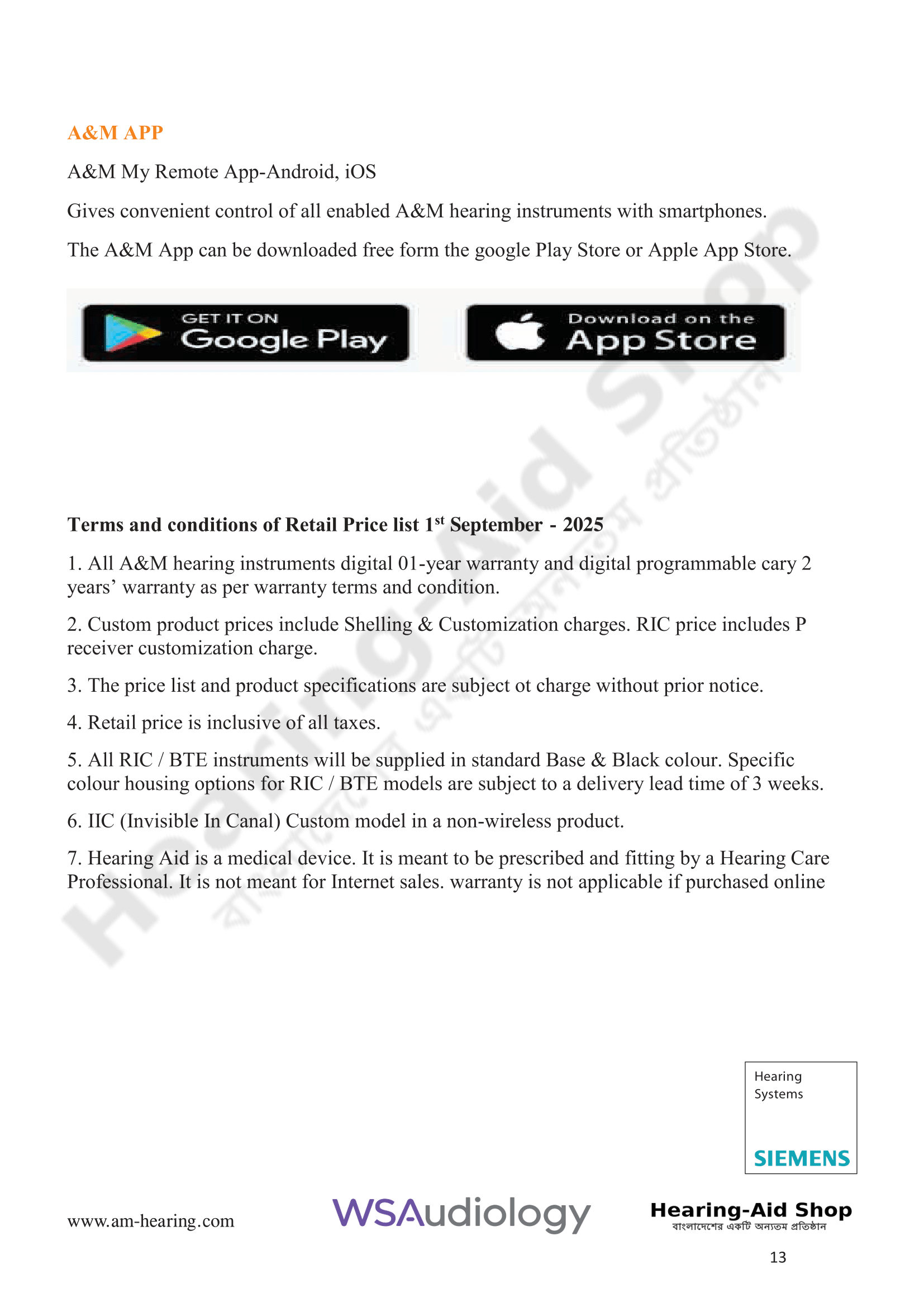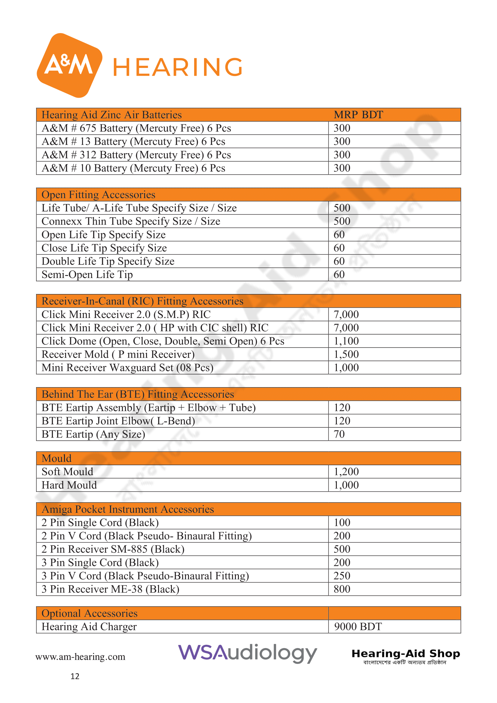 A & M Hearing Aid Price List 2025
