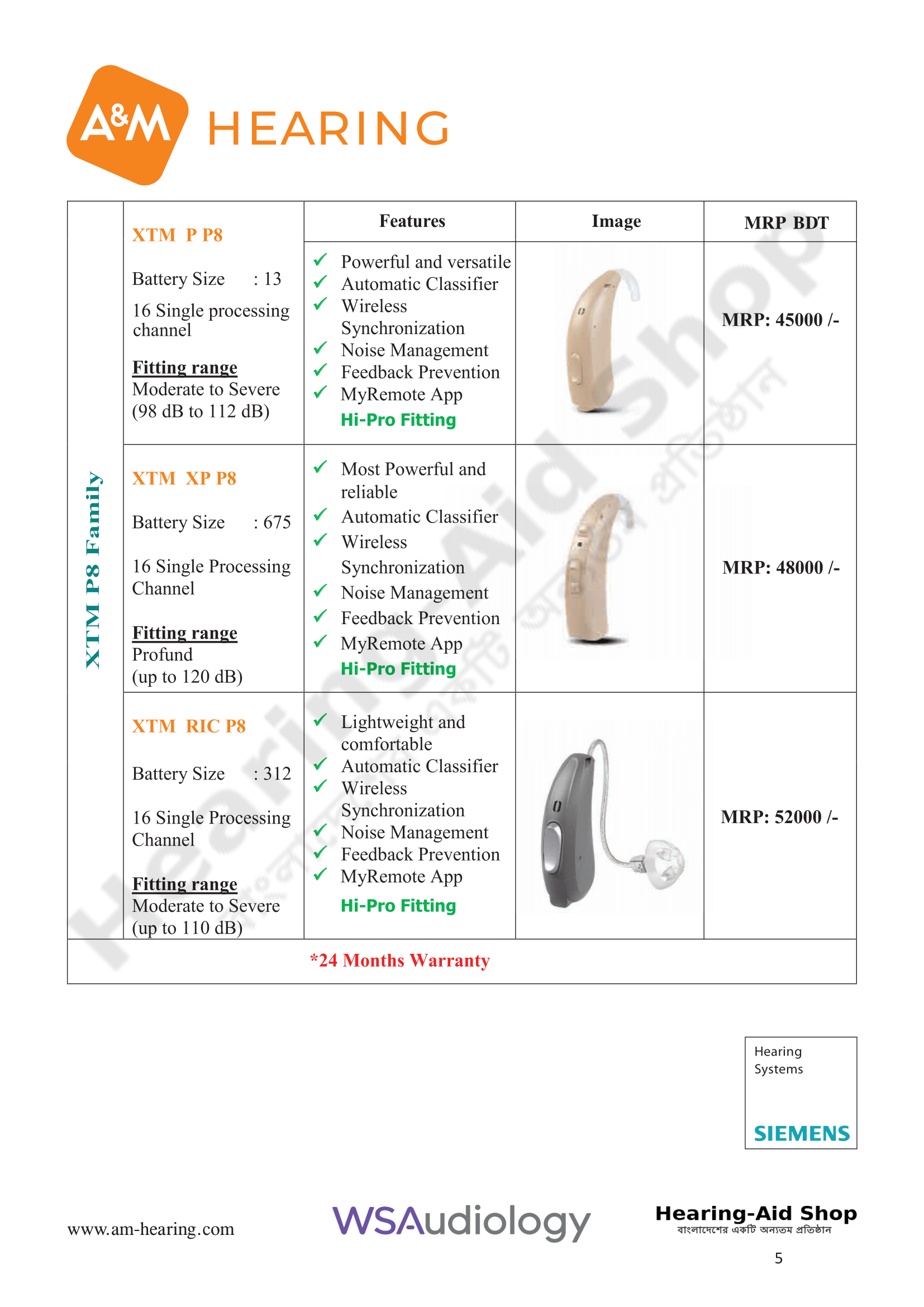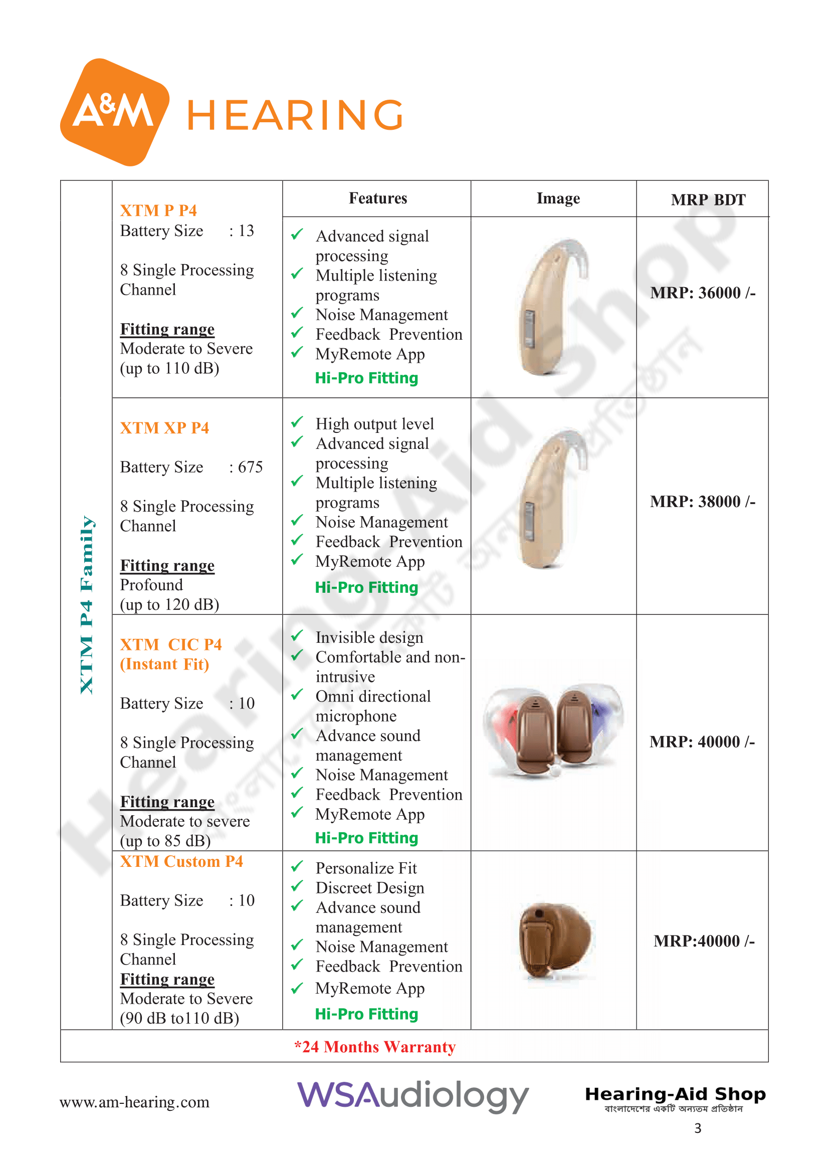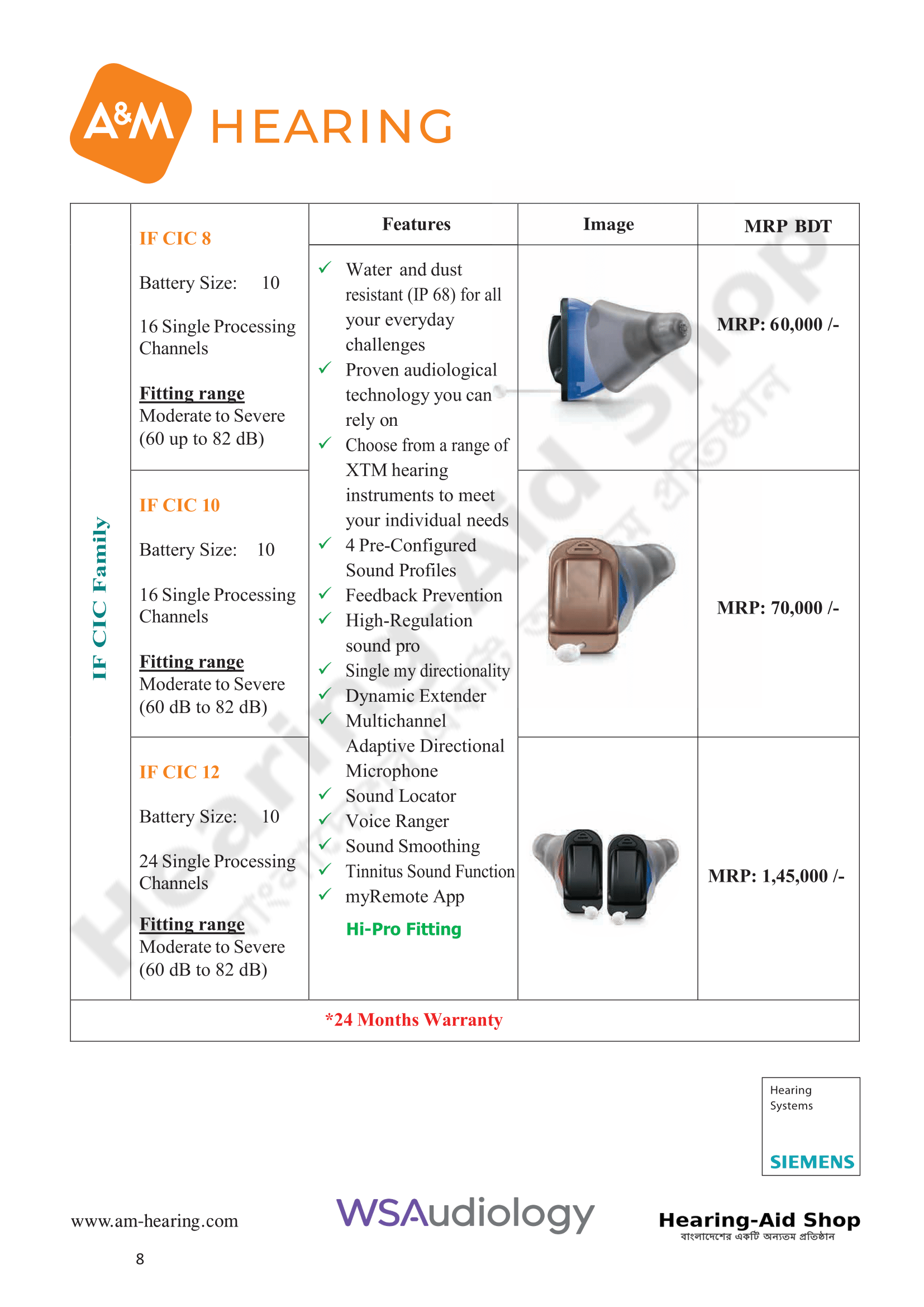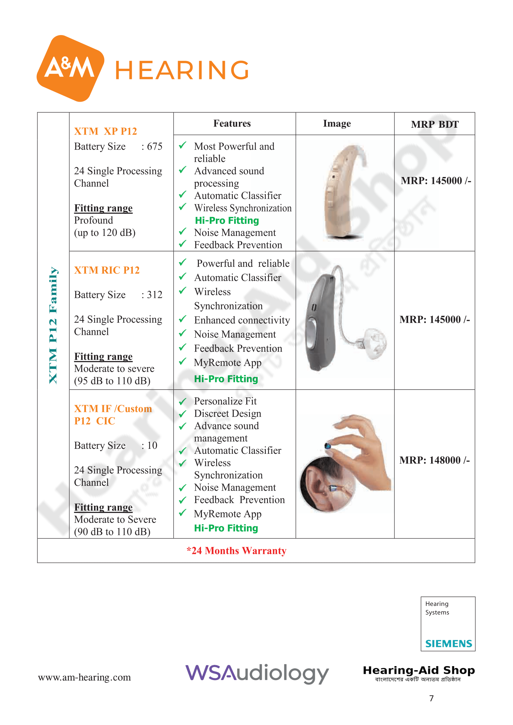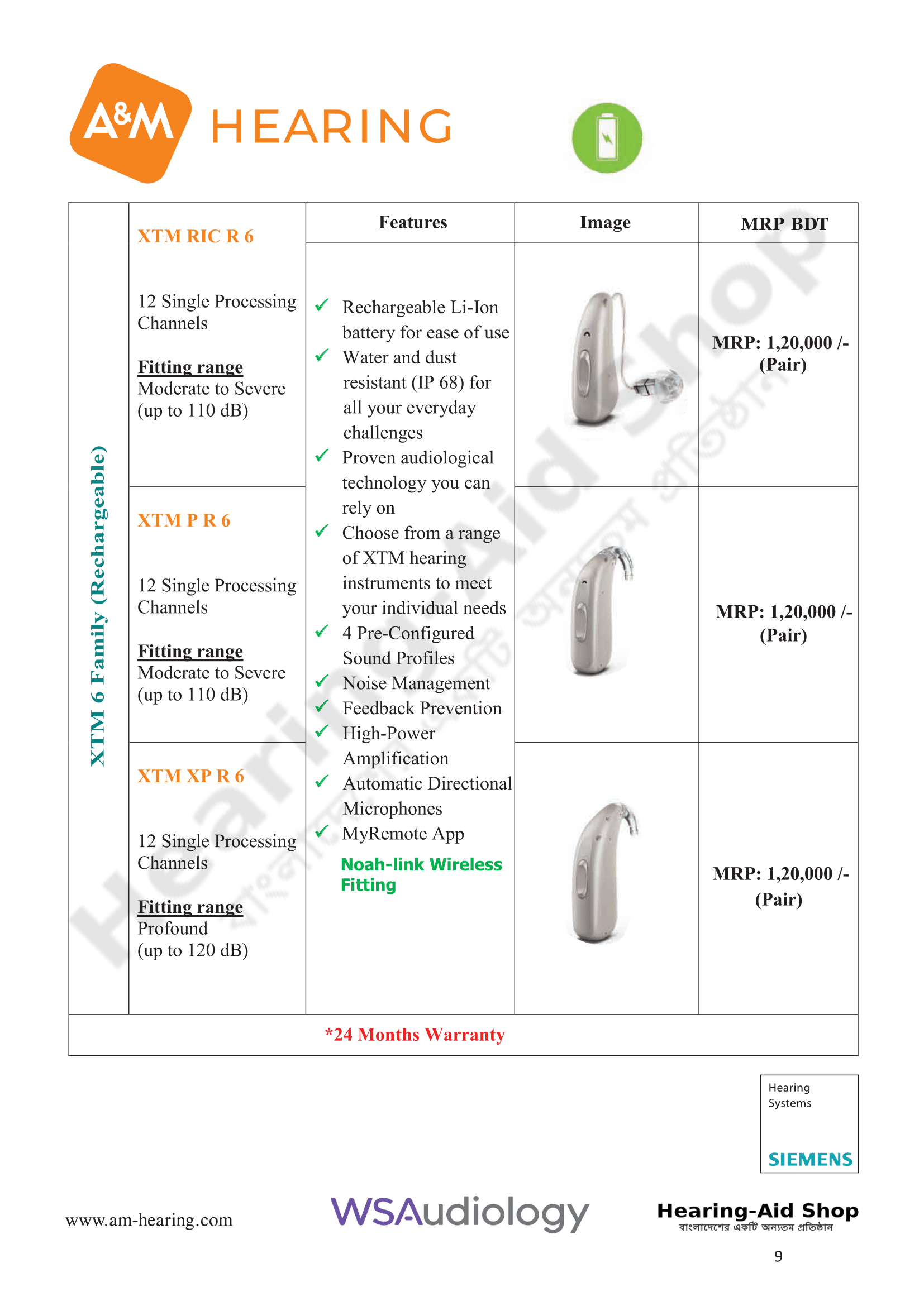 A & M Hearing Aid Price List 2025